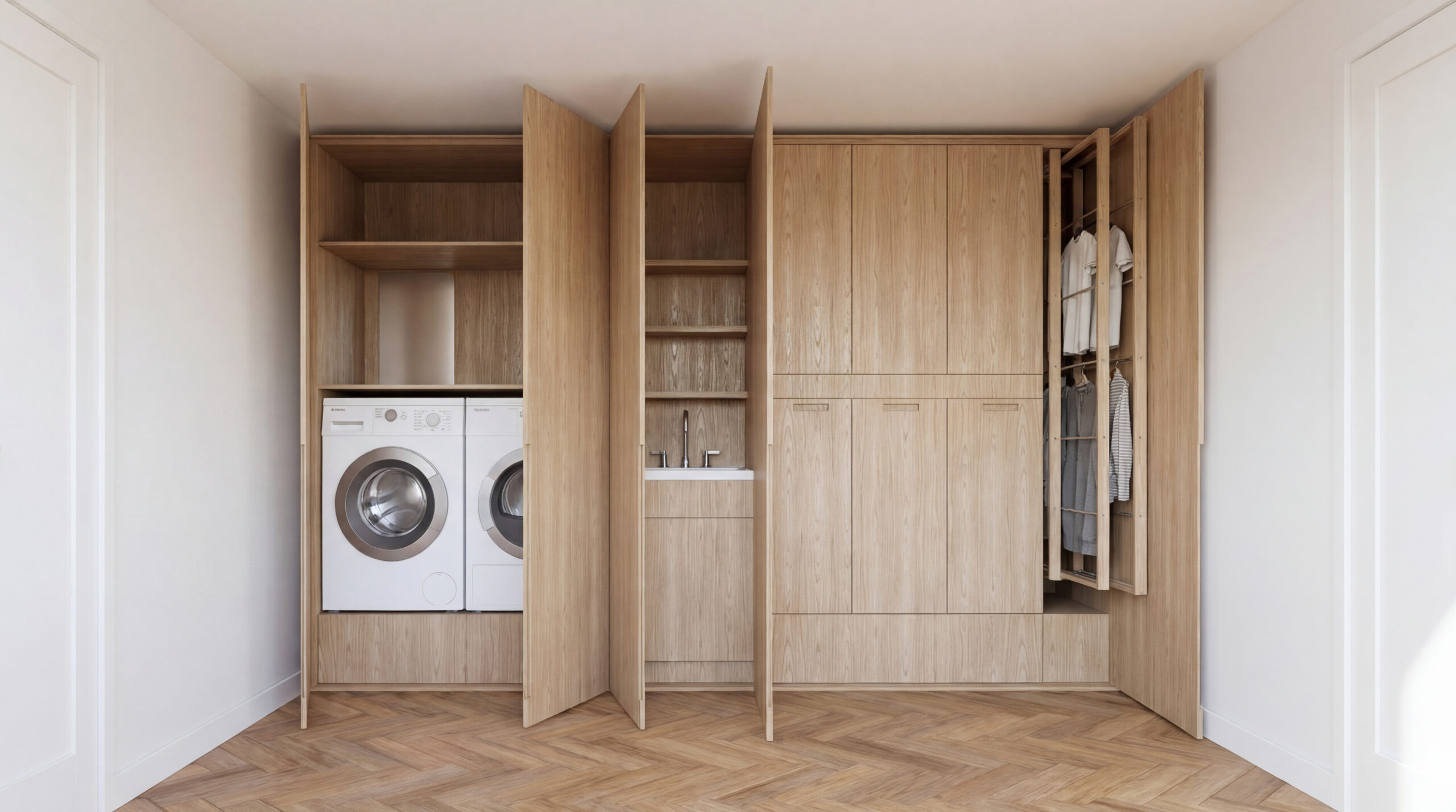 A great laundry room is more than a washer and dryer. We design organized, efficient laundry spaces that fit your NYC home perfectly — including combination laundry-bath layouts.
